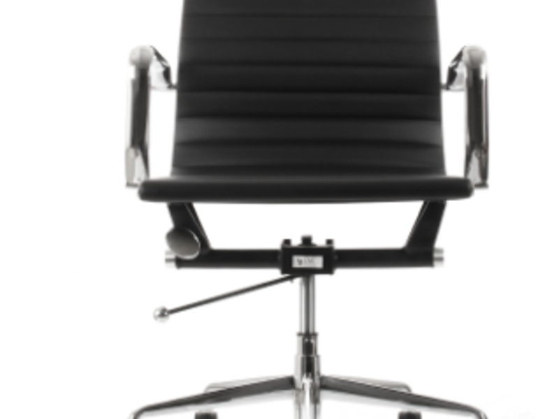 Silla Reunión Atton Media, tapizada en ecocuero, respaldo medio, mecanismo reclinable, regulación del altura del asiento, estructura y base cromada. Disponible con brazos.