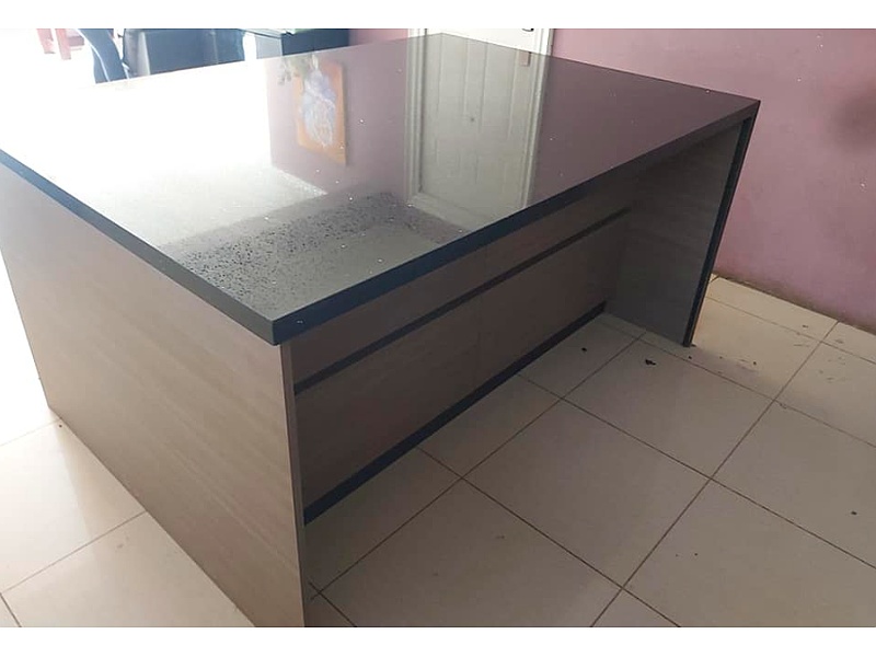 Mesón de granito, robusto y elegante, ideal para cocinas y baños, que ofrece durabilidad y un acabado sofisticado en cualquier ambiente.