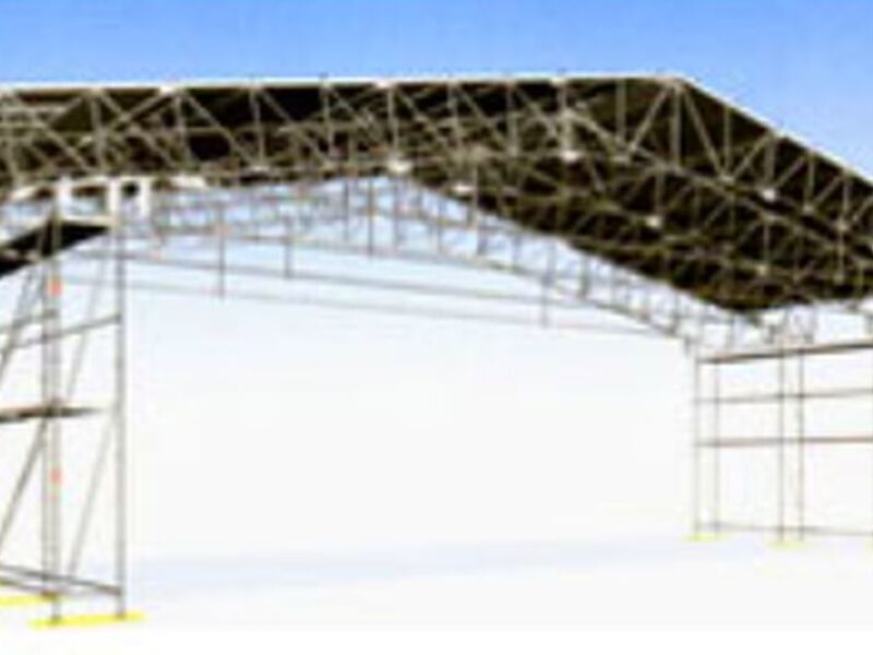 El Techo Cassette de Layher gran luminosidad y soporta grandes cargas. Es una protección temporal estable y versátil contra el tiempo que puede montarse sobre cualquier sistema de andamios.