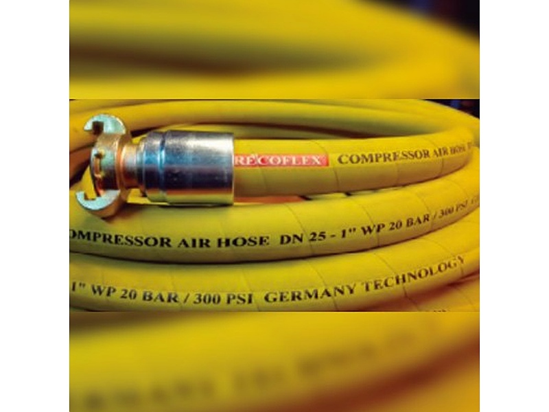 Manguera de aire / agua: Manguera de caucho sintético tipo vendada, resistente a la abrasión y a condiciones climáticas. Usada en plantas industriales, minería y construcción de obras civiles, o bien en aplicaciones de agua en presión o lavado industrial.