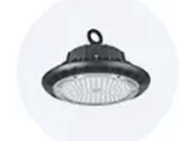 Potentes campanas LED en forma de platillo, diseñadas para iluminar espacios industriales y almacenes con eficiencia y luminosidad superior.