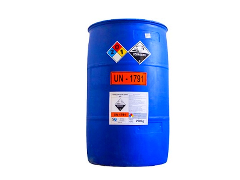 Embalaje: 65kg bidón / 220kg tambor / 1.160kg IBC / Fórmula Molecular: NaClO / CAS No. 7681-52-9