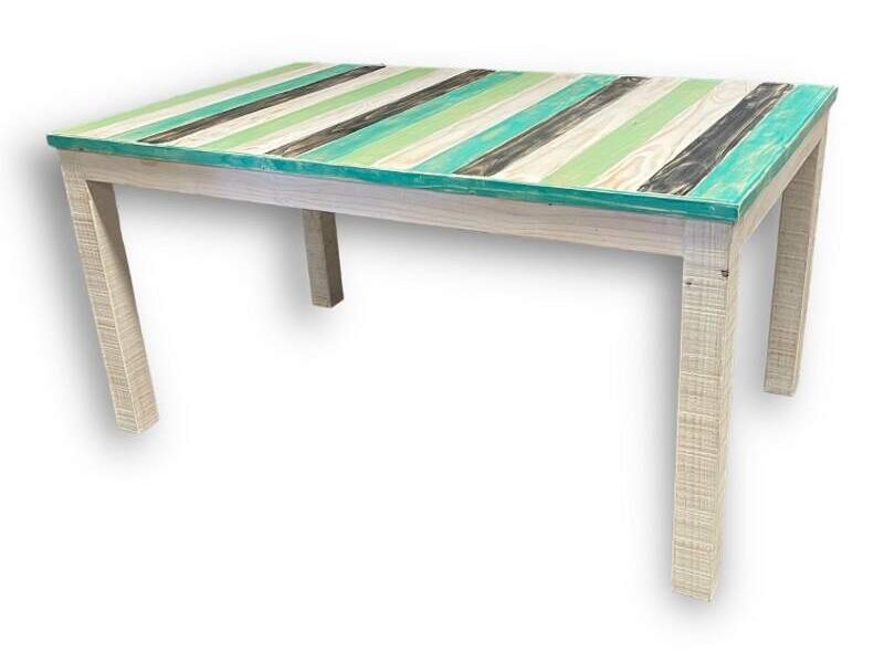 Mesa rustica de madera con colores aguados y estilo albayalde. Medidas Altura : 75 cm aprox. Largo : 150 cm aprox. Ancho : 90 cm aprox.