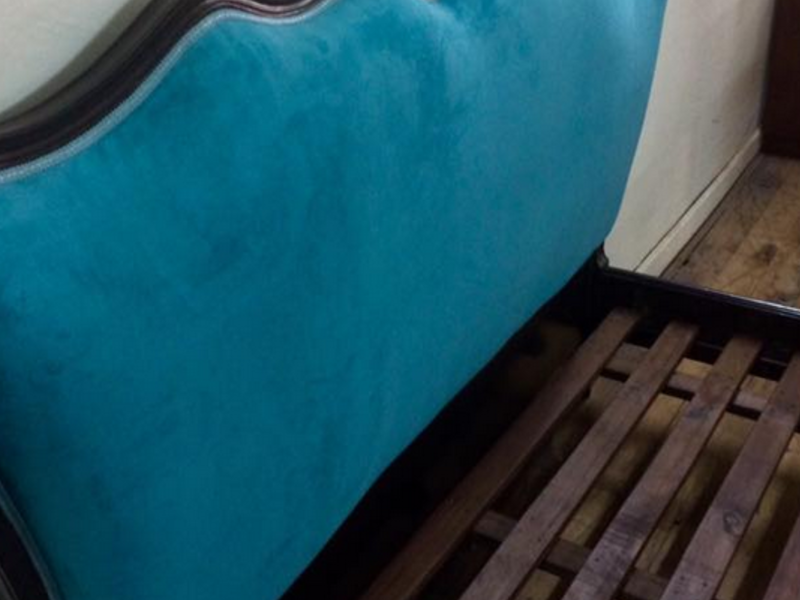 Cabeceras de cama hecho en madera tapizados en color turquesa con diseños modernos