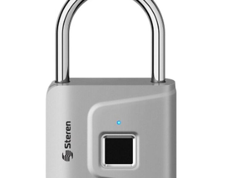Un candado biométrico resistente a la intemperie con reconocimiento de huellas dactilares, ideal para asegurar casilleros, cajas de herramientas o bicicletas con un acceso seguro y sin necesidad de llaves.