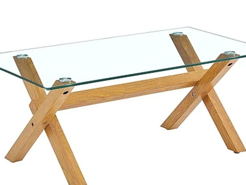 Mesa fabricada en base metaliza electropintada con patines articulados y cubierta de vidrio templado