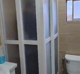 Ventana de baño con marcos de aluminio y vidrio opaco, ideal para privacidad en áreas húmedas.