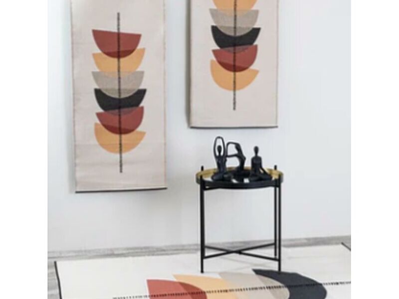 Dale un toque moderno y sofisticado a tu hogar con esta impresionante alfombra estampada. Su diseño geométrico en tonos grises y blancos se verá ideal en cualquier espacio.
