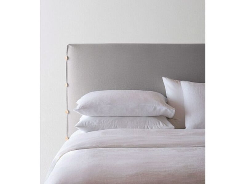 Respaldo de cama con funda de lino desmontable con fuelle y doble pestaña por todo el borde. El respaldo incluye soportes para poder colgar al muro o simplemente dejar apoyado al suelo.