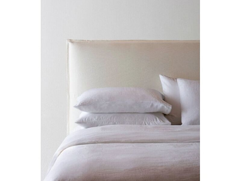Respaldo de cama con funda de lino desmontable con pestaña por todo el borde. El respaldo incluye soportes para poder colgar al muro o simplemente dejar apoyado al suelo.