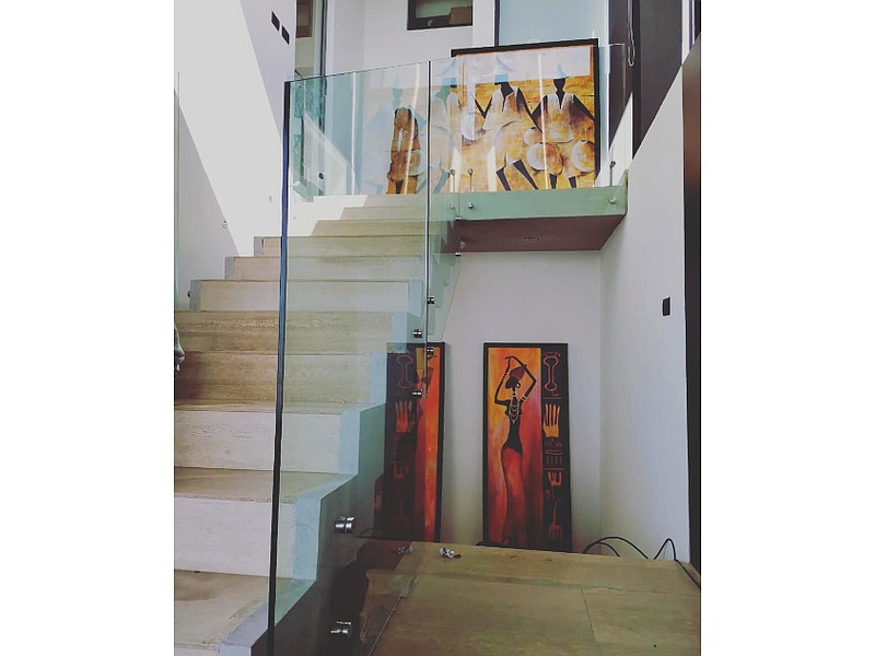 Baranda de cristal templado 12mm incoloro con pernos de acero inoxidable.
