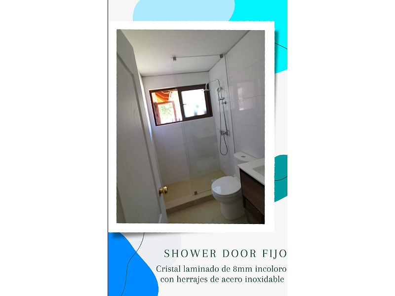 Cristal laminado de 8mm incoloro con herrajes de acero inoxidable
