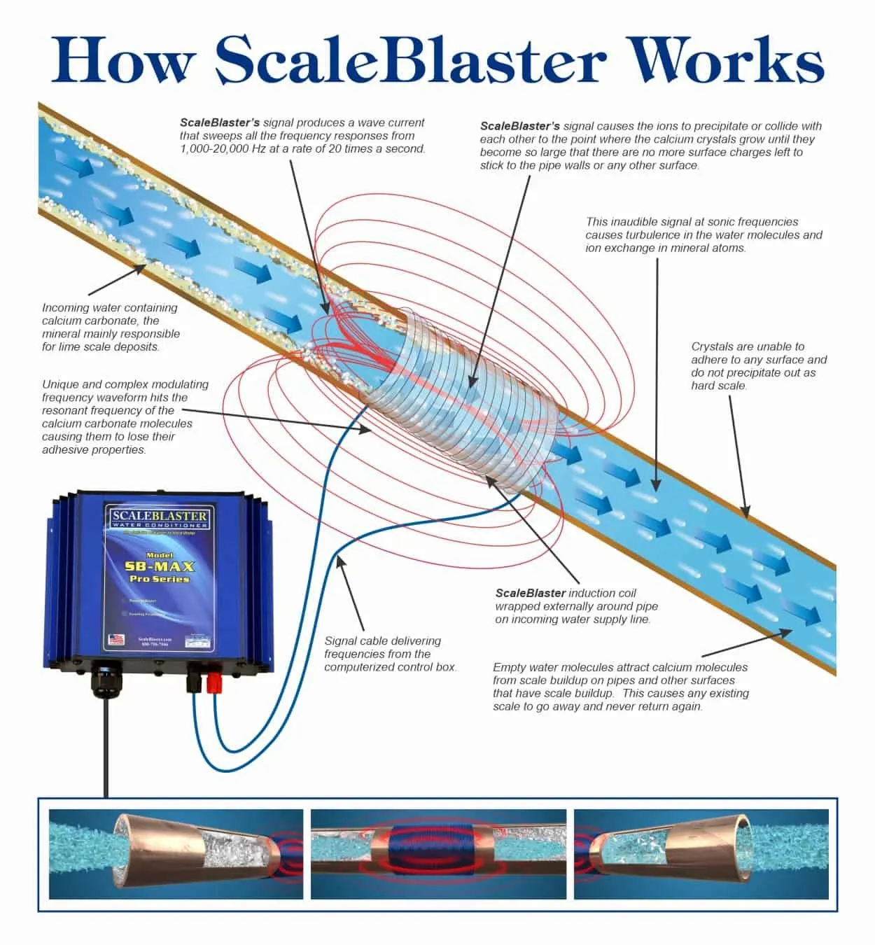El tratamiento de la cal y la purificación del agua pueden dar lugar a numerosos beneficios de valor añadido. Una vez que instale ScaleBlaster, se sorprenderá gratamente: