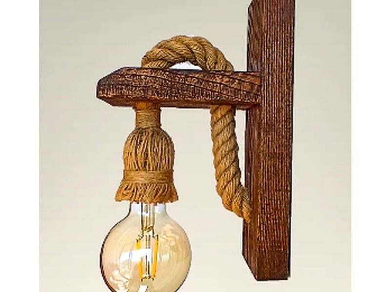 lámpara de pared hecha en castaño con cordón de yute y ampolleta estilo vintage