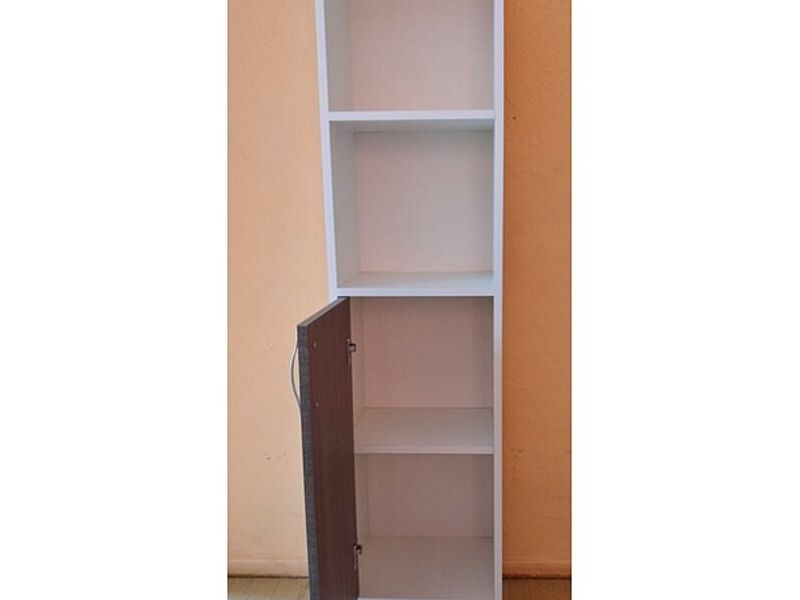 Repisa en melamina blanca con puerta melamina MDF gris, manilla metálica.. dimensiones 1,40x33x25.